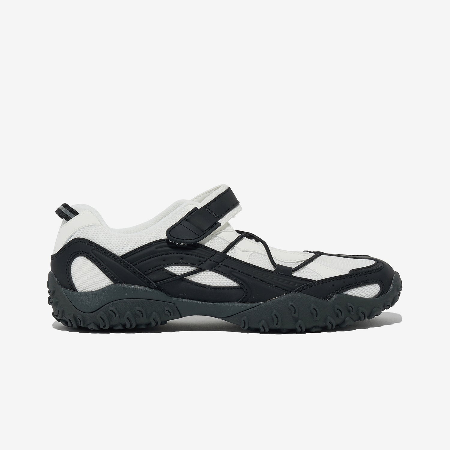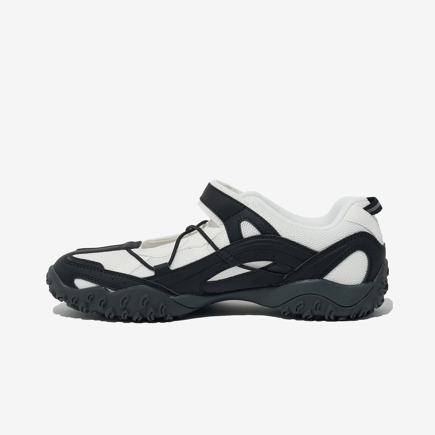 벨크로 스트랩과 어퍼에 적용한 다양한 패턴, 스트링 포인트를 통해 페미닌하면서도 스포티한 무드를 연출했습니다.