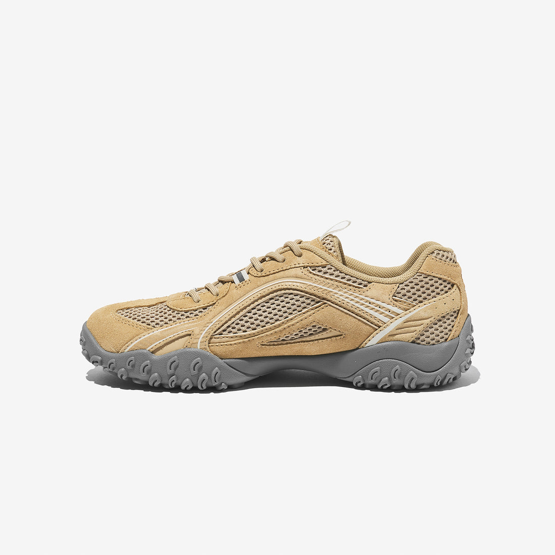 스포티한 라인 패턴을 적용해 고프코어 특유의 감성을 표현했으며, 측면 로고를 과감히 제거해 더욱 정제되고 깔끔한 무드를 완성했습니다.